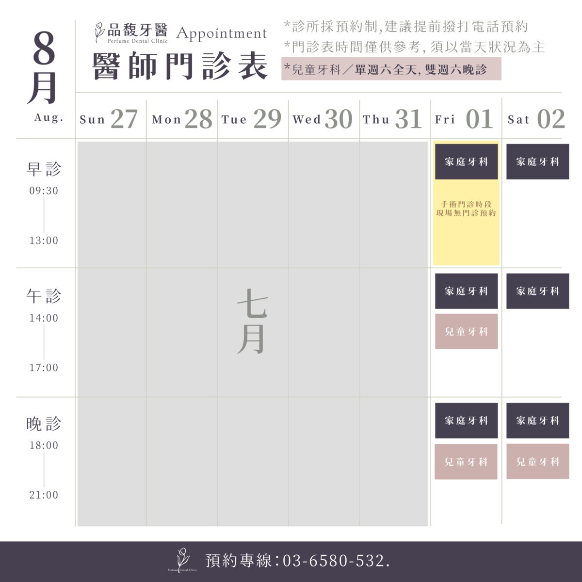 ▪這是8月品馥門診時間呦▪