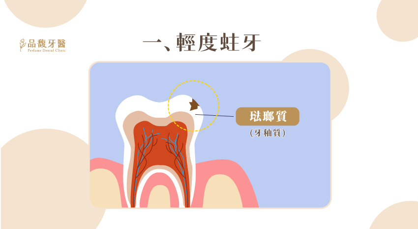 輕度蛀牙範圍只在琺瑯質