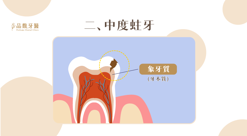 中度蛀牙有侵犯到象牙質