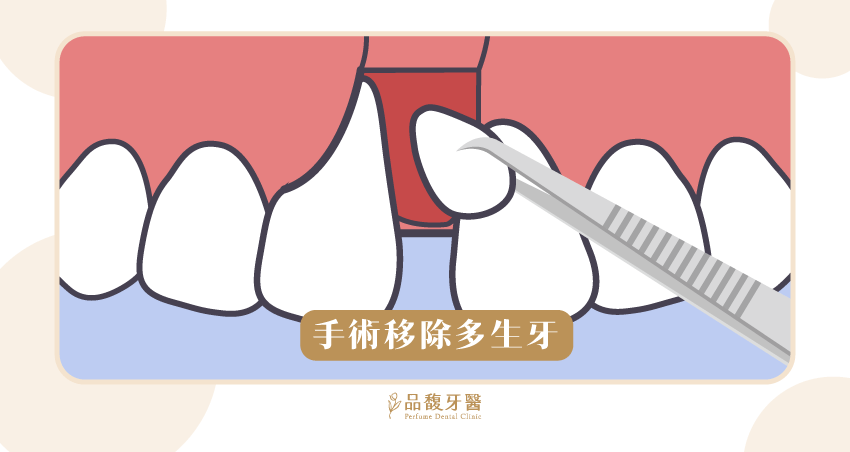 如同前述,早期混合齒列將多生牙拔除可能加速正中門齒自主萌發及排列,並降低多生牙干擾、空間喪失及中線偏移的情形。晚期混合齒列將多生牙拔除則可以確保正中門齒牙根發育完全不受拔除手術影響。